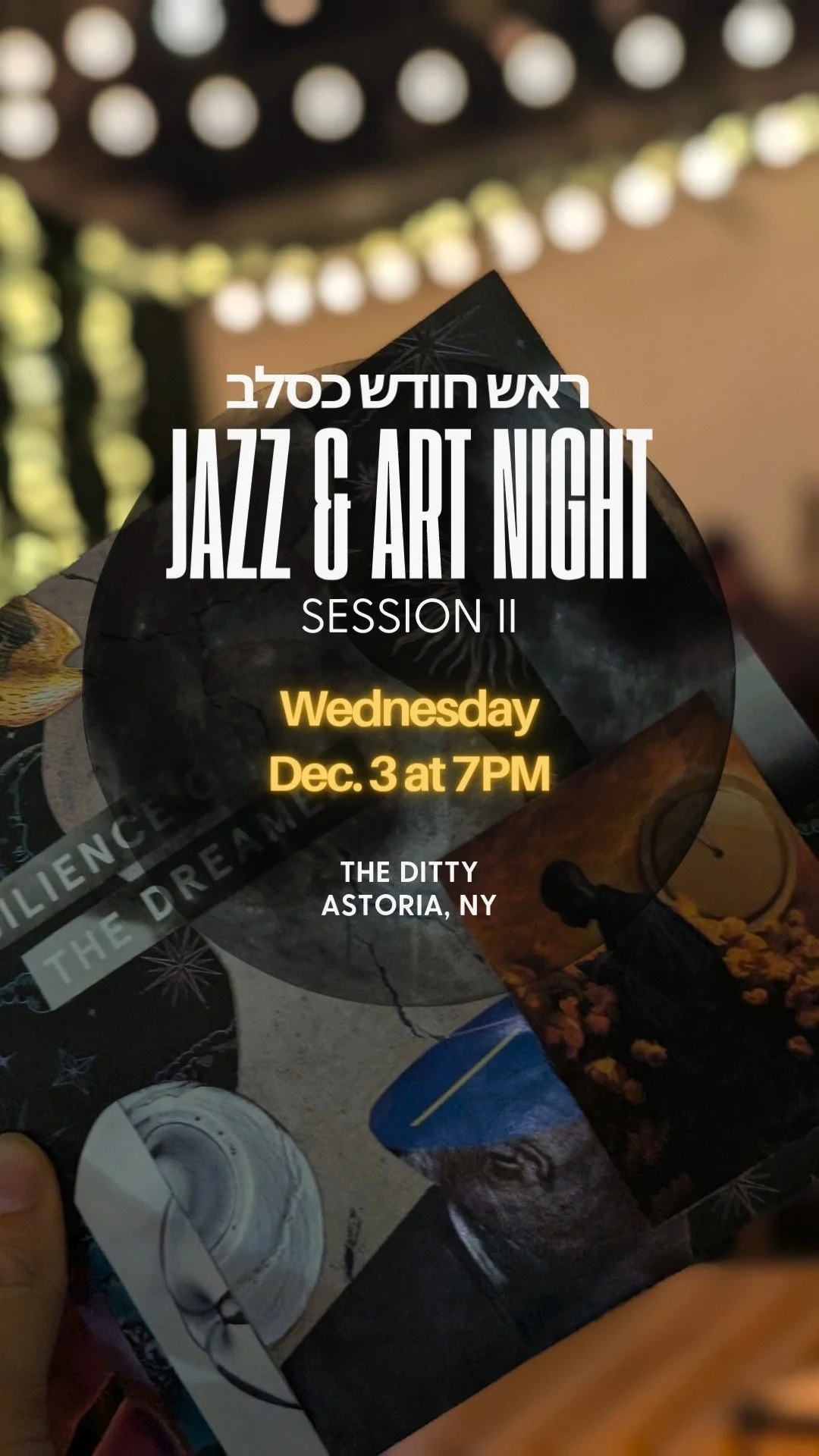 We're back for Rosh Chodesh (new month/new moon) collaging and live jazz on Wednesday, Dec. 3 at 7PM at The Ditty.